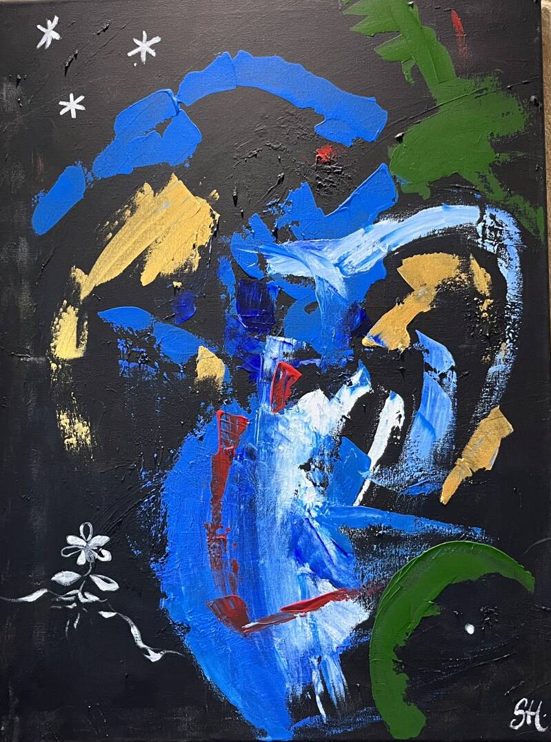 La peinture est un moyen de communiquer avec les autres, de s'exprimer et en regardant sa toile et celle des autres, on voit le plaisir et la liberté de ce que ça peut apporter. Chacun y voit ce qu'il veut. L'imaginaire est là et permet de nous découvrir, d'oublier des problèmes, son handicap physique et psychologique.